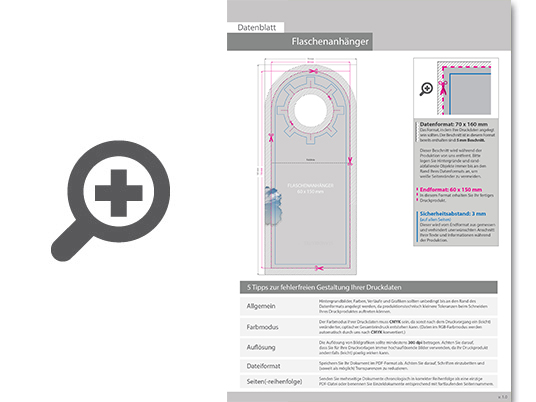 Flaschenanhänger 60 x 150 mm mit Falz, 5/0-farbig (CMYK + Weiß) einseitig bedruckt