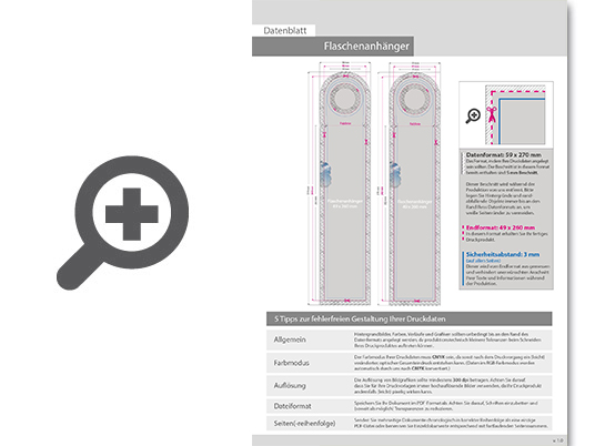 Flaschenanhänger 49 x 260 mm mit Falz, 4/4-farbig beidseitig bedruckt, mit beidseitiger Folienkaschierung glänzend