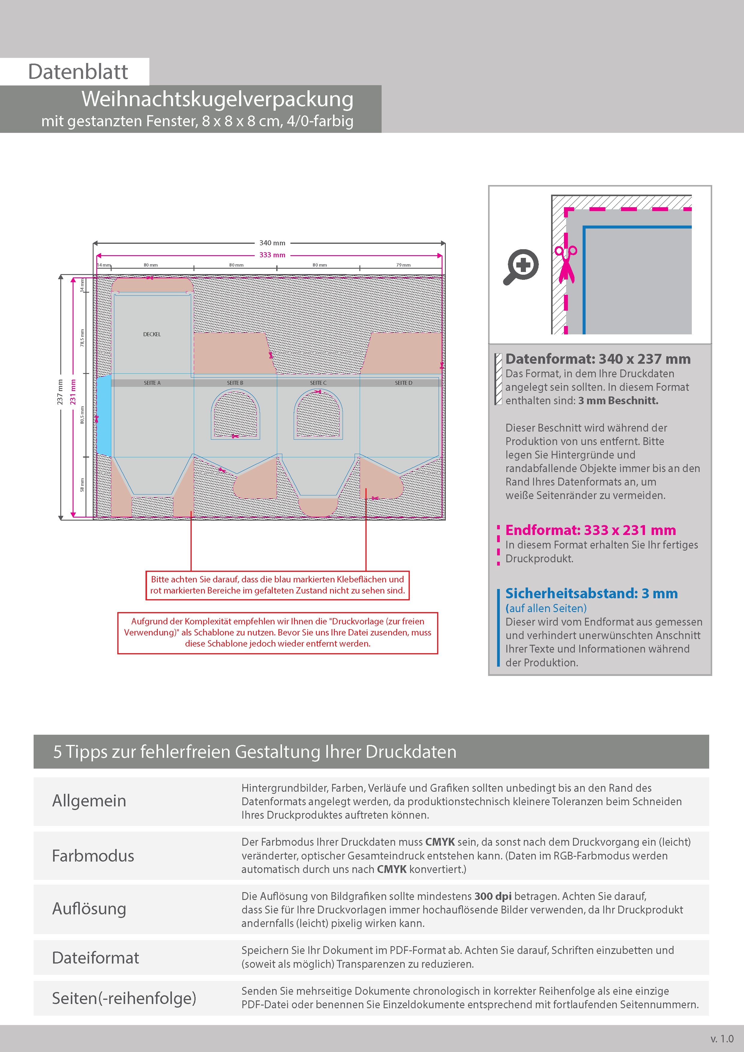 Weihnachtskugelverpackung mit gestanzten Fenster (8 x 8 x 8 cm) einseitig bedruckt 4/0-farbig