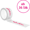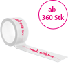 Unsere PP-Paketklebebänder verschließen Kartons nicht nur zuverlässig, sie tragen außerdem zum Branding bei. Bei den transparenten Klebebändern haben Sie die Wahl zwischen weißer und transparenter Klebefarbe, den Druck führen wir auf der PP-Folie je nach Wunsch einfarbig, zweifarbig oder dreifarbig aus. Die PP-Paketbänder sind pro Rolle 60 m lang und ca. 48 mm breit. Bei der Druckfläche für beispielsweise Ihr Firmenlogo können Sie zwischen Formaten von ca. 189 x 48 mm bis 420 x 48 mm wählen.