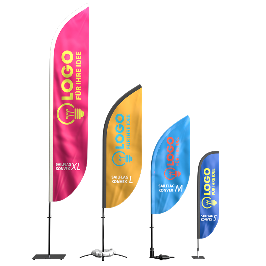 Auffällige Werbetechnik ist für erfolgreiche Promotionaktionen wichtig. Lassen Sie hierzu bei uns hochwertige Sailflags bedrucken! Diese halten wir für Sie in verschiedenen Ausführungen und mehreren Größen bereit. Dank der unterschiedlichen Befestigungssysteme lassen sich unsere Sailflags zudem besonders vielseitig einsetzen, z. B. auf Messen und Events oder am Point of Sale. Den robusten Stoff bedrucken wir vollfarbig mit Ihrem Motiv – natürlich in Spitzenqualität zu fairen Preisen.